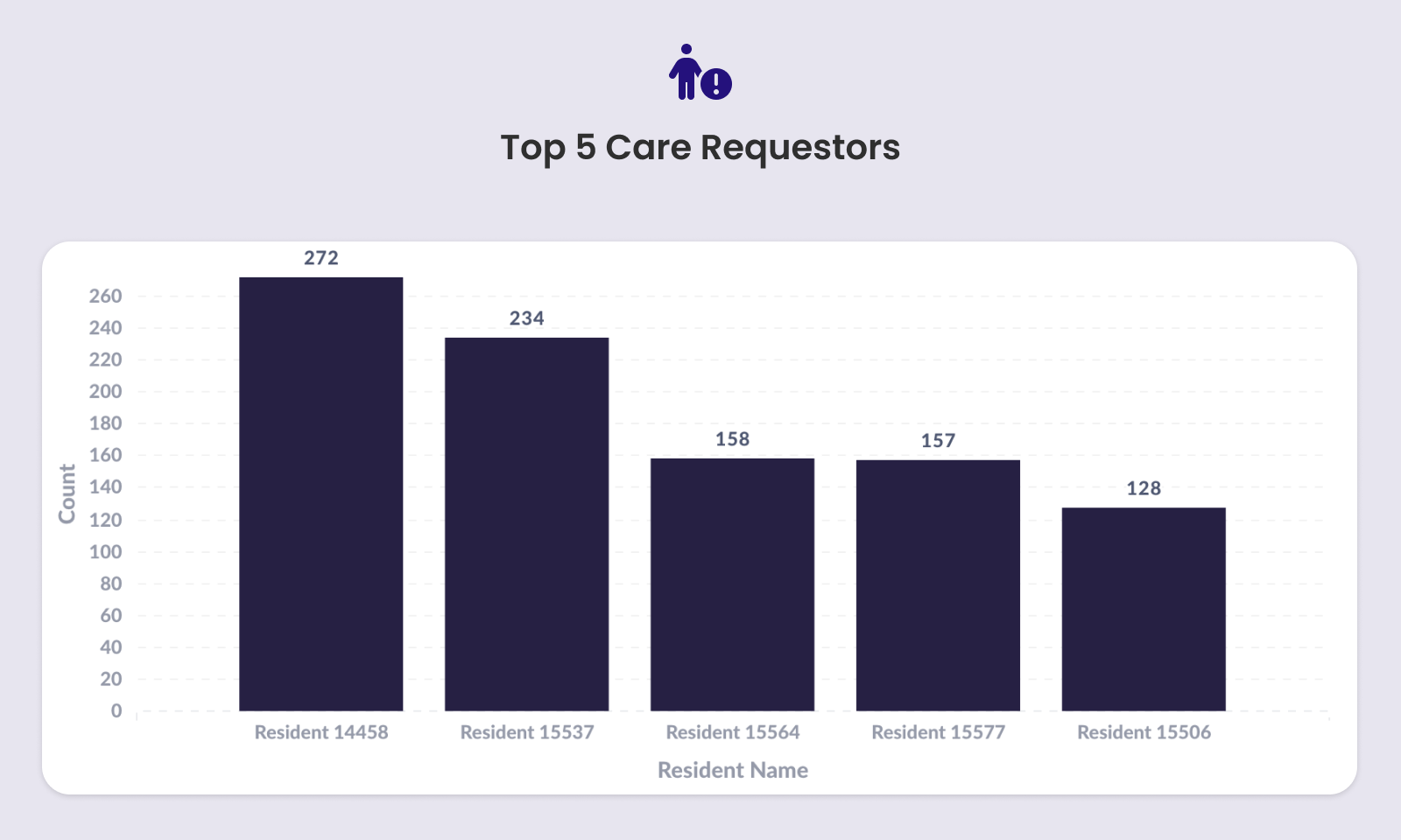 Data can also be used by care managers to easily see and track patterns in residents’ needs. With this information, they can identify if changes to the residents' care need to be made to properly address their needs. For example, if a resident has an increase in the need for assistance to use the bathroom, that may signal that they have a medical condition that needs care. Or, if a resident has a spike in mobility needs, they may need a different type of mobility device than they currently use.