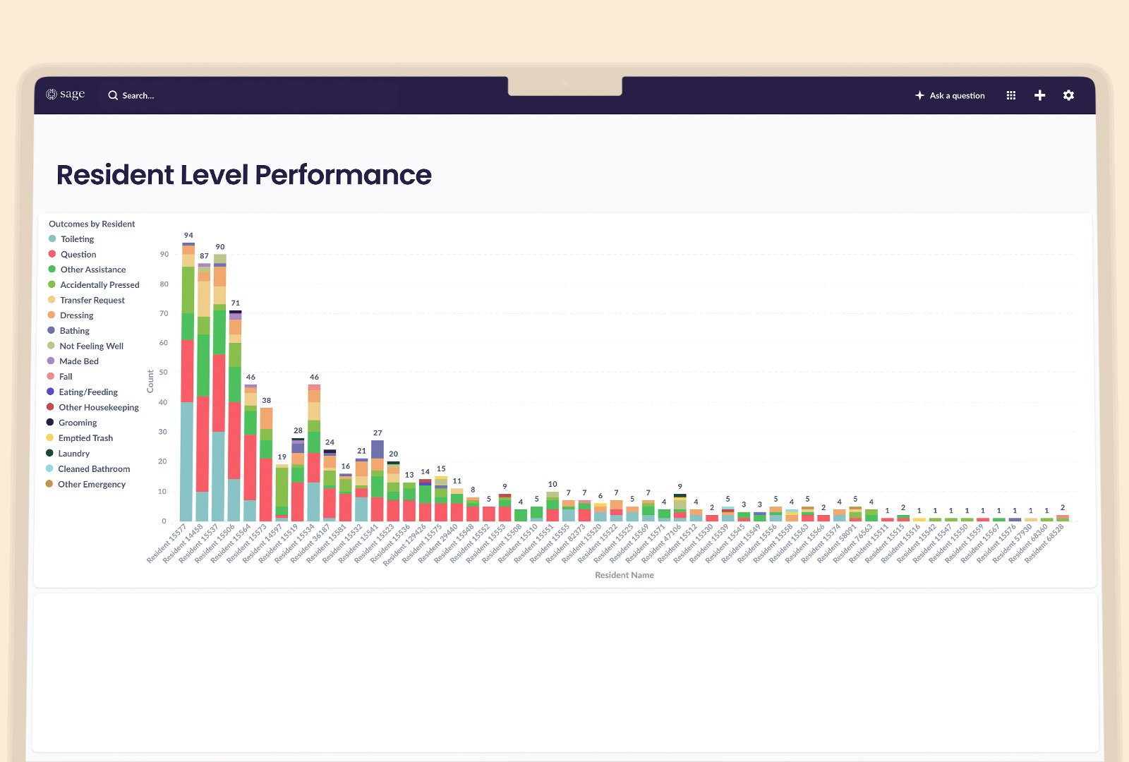 Sage is a tool that can help to implement family-facing reporting. With Sage, residents can communicate their needs to attendants and staff by using smart devices to notify them. The staff receives these alerts on a mobile app. Sage’s dashboard collects these data points and provides an accurate and complete overview of residents’ care for their families.