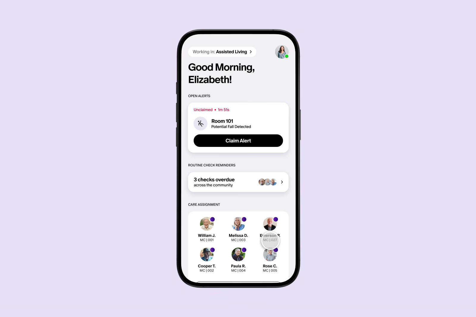 An easy-to-use care app that brings real-time alerts and resident context into one intuitive experience—helping caregivers stay organized and focused throughout their shift.