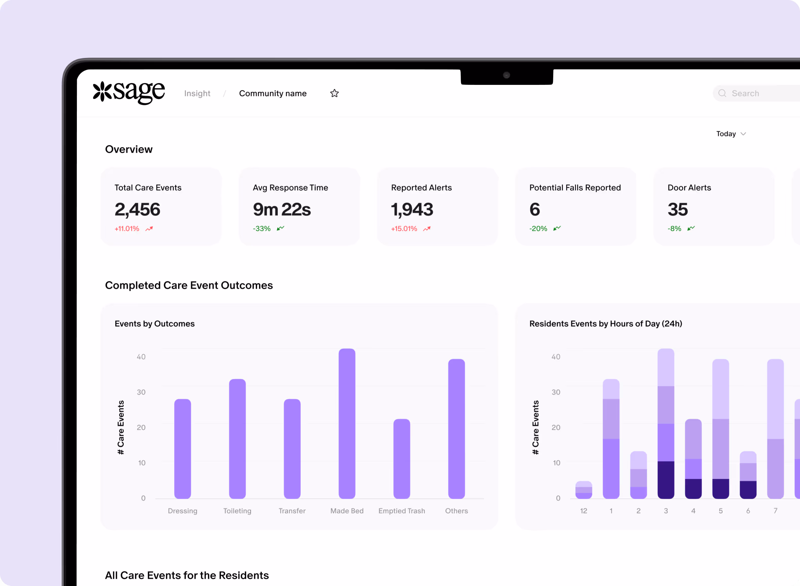 I’ve shown families the Sage reports even before we assess residents. I’ll show them and say, “Hey, this is where we’re headed with your dad. He’s increasing his button presses, his care needs are increasing. If this continues over the next week or so, we’re going to have to reassess him because we’re increasing his care.” That way they aren’t surprised when we tell them we’re reassessing him.